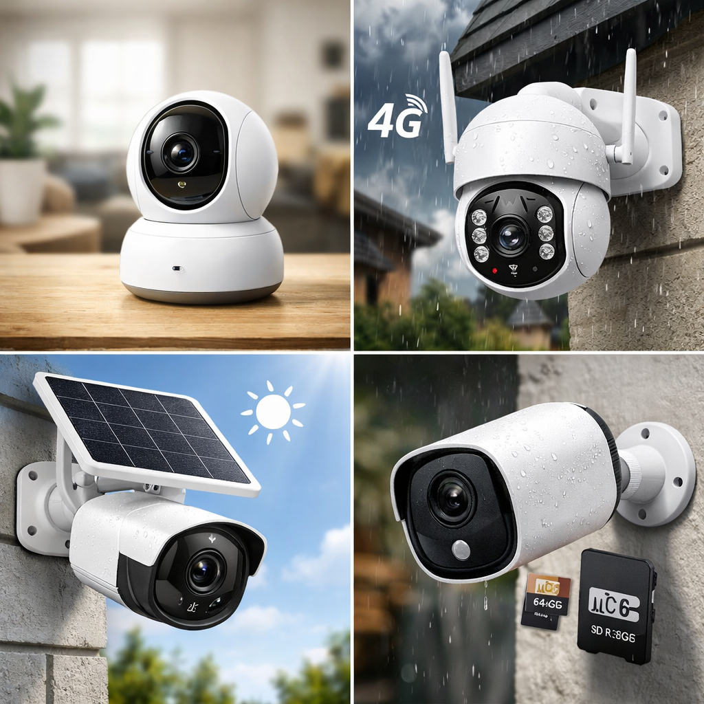Camere video de supraveghere interior/exterior, camere WiFi, 4G, solare și cu card de memorie