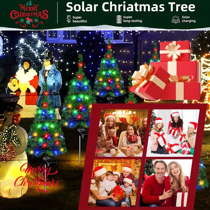 🎄 Adaugă spiritul Crăciunului în grădina ta cu acest set de 4 lămpi solare LED în formă de brad! Lumina multicoloră creează o atmosferă festivă magică, iar designul waterproof le face ideale pentru alei, curți și terase. Fără cabluri și fără efort — se încarcă ziua și luminează noaptea! ✨